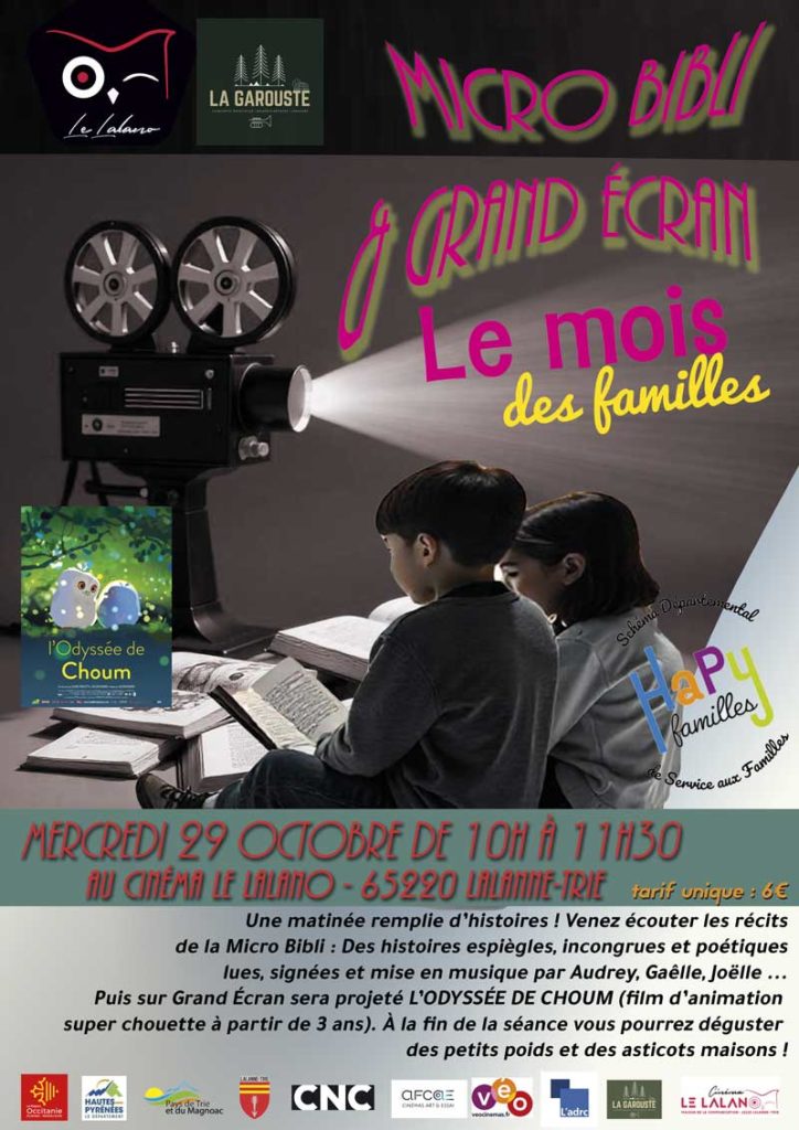 Puis vous assisterez grâce à Grand Écran, à la projection de L’ODYSSÉE DE CHOUM (film d’animation super chouette à partir de 3 ans). À la fin de la séance vous pourrez déguster
